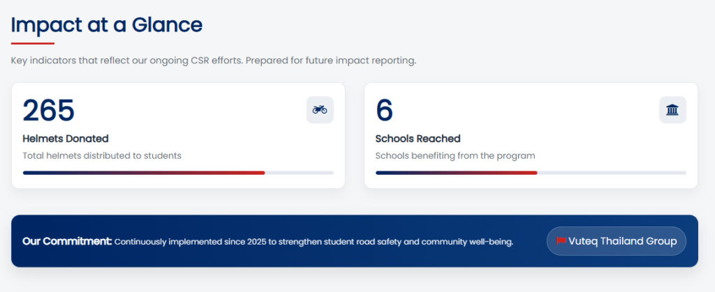 • Helmet Donation – Phutti Rangsi Phibun School On November 6, 2025, at 9:00 AM, Vuteq Thai Co., Ltd. (EPD Packing Plant)