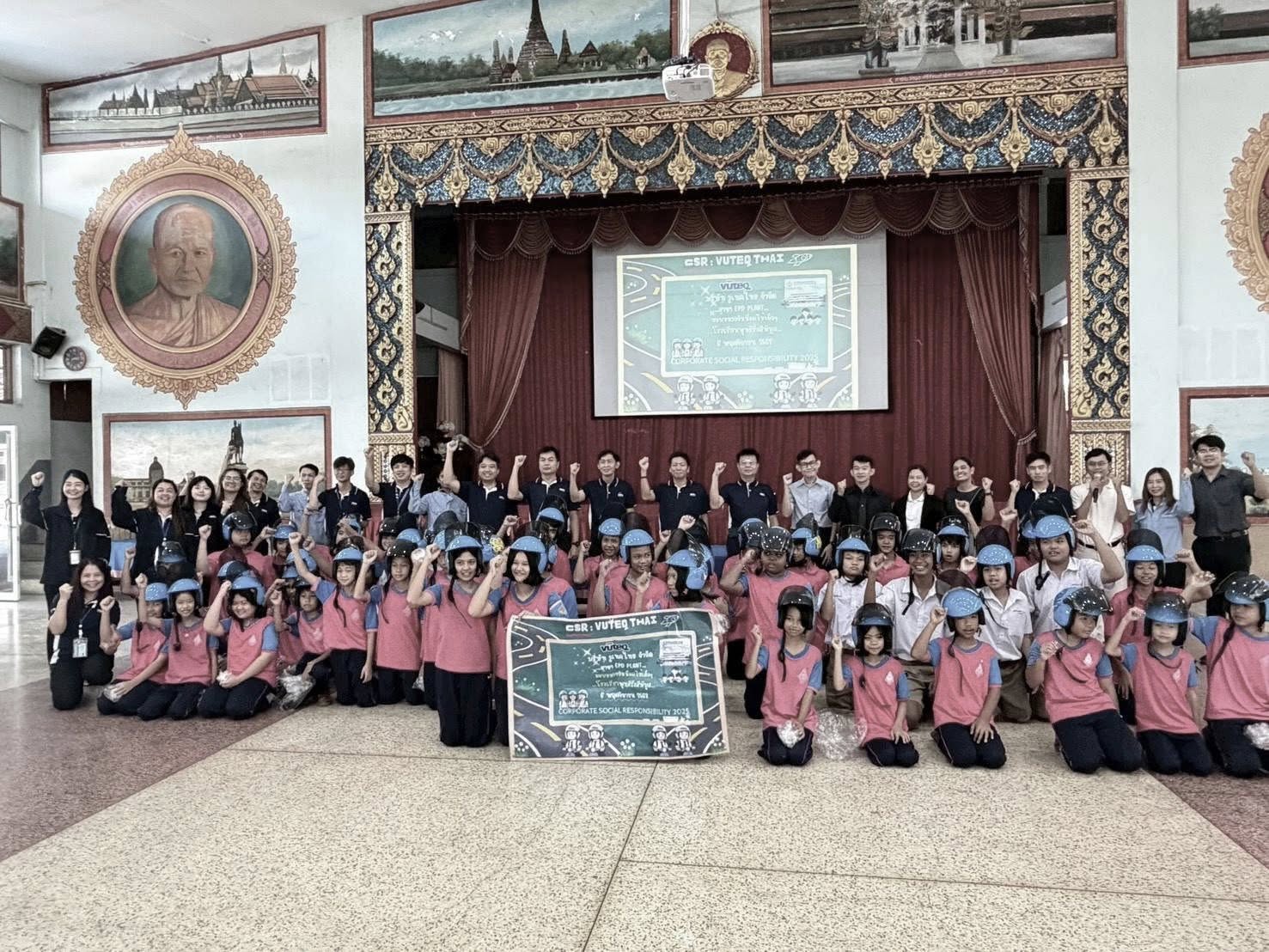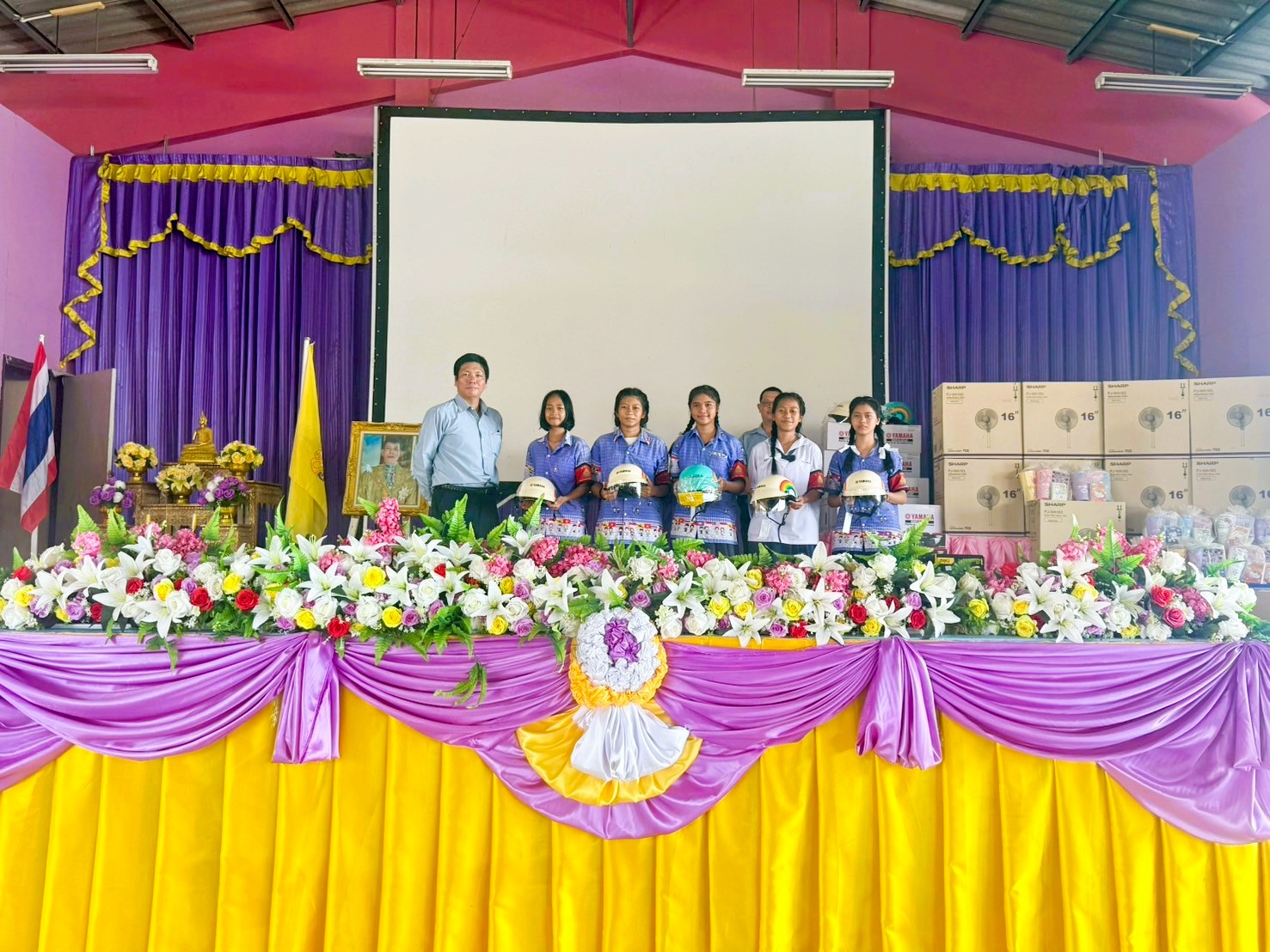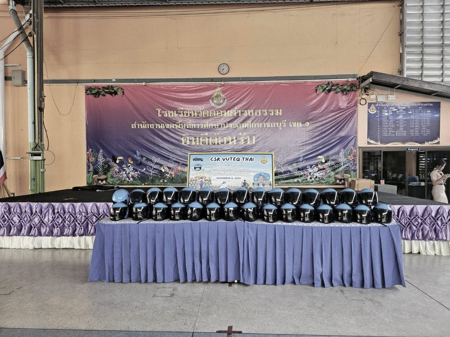 จำนวนหมวกที่บริจาค: 45 - มอบหมวกกันน็อค – โรงเรียนชุมชนบริษัทน้ำตาลตะวันออก วันที่ 1 ธันวาคม 2568 บริษัท วูเทคไทย จำกัด สาขาระยอง